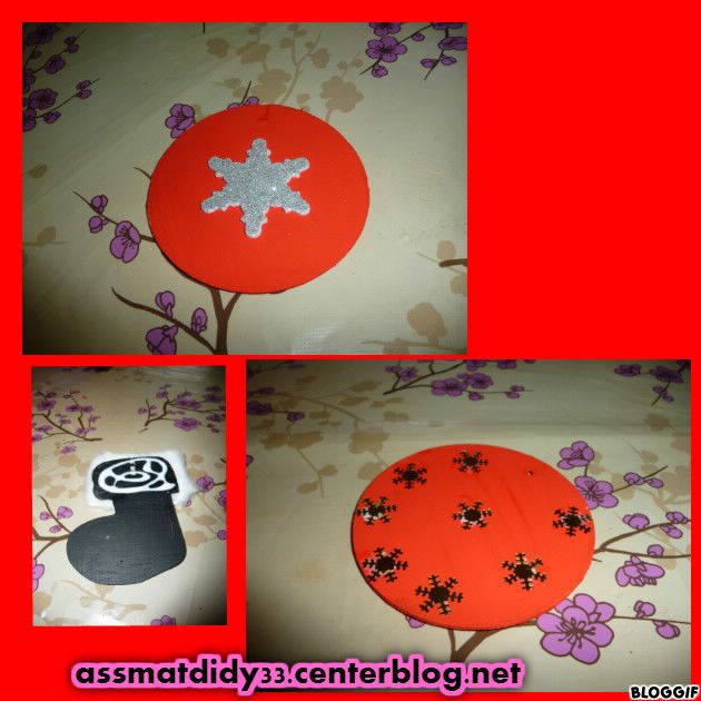 Faire une empreinte de main sur une feuille, laisser sécher, décorer. Au dos, mettre une photo ou autre. Découper en forme de boule. Mettre un petit message.